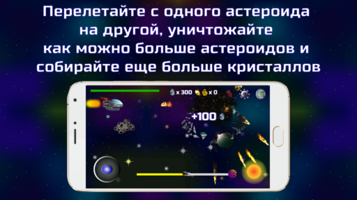 — Перелетайте с одной планеты на другую, уничтожайте как можно больше вражеских космических пришельцев, инопланетян и астероидов и собирайте еще больше кристаллов.
